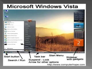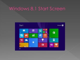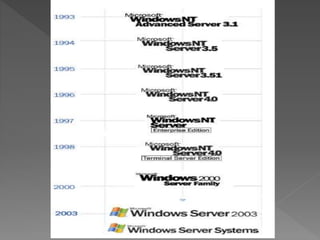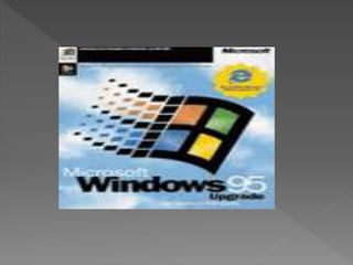 The document discusses the history and key releases of the Microsoft Windows operating system from 1985 to 2013. It describes early versions like Windows 1.0, 3.0, and NT 3.1. Major releases are covered such as Windows 95, 98, ME, XP, Vista, 7, 8, and 8.1. Each new version brought performance improvements, expanded features, and support for newer hardware. The document provides an overview of the evolution of Windows over time from its early graphical beginnings to its modern incarnations.