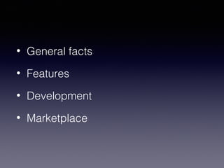 Windows Phone 8 was a successor to Windows Mobile released in 2012, featuring a touch-friendly "Metro" interface, integration with Microsoft services like SkyDrive and Office, and development tools like the Windows Phone SDK and Visual Studio to make app creation easier. It aimed to have the best user interface for mobility while maintaining common code with Windows 8 and being handy for documents.