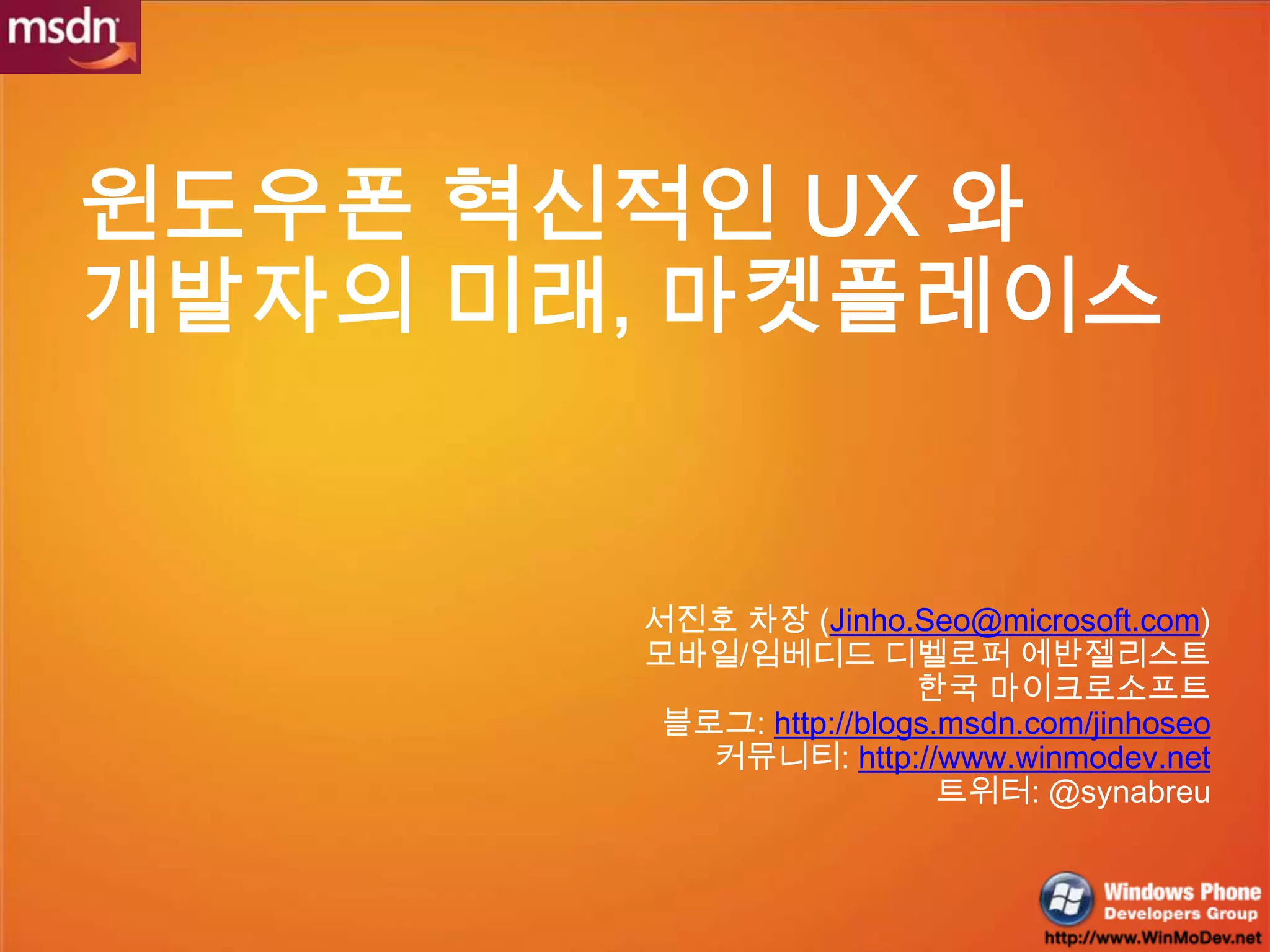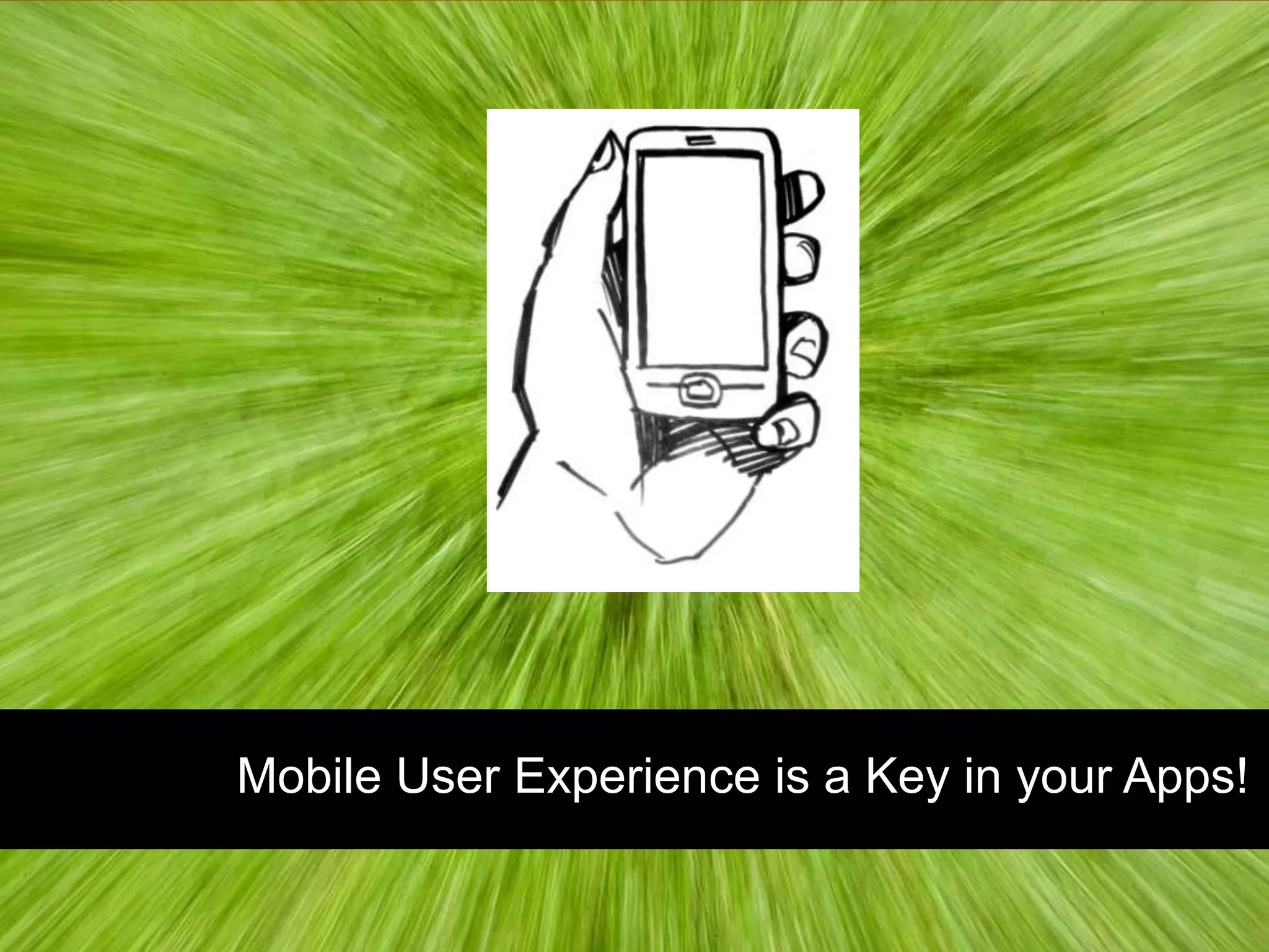 This document discusses the importance of user experience for mobile applications on Windows Phone. It emphasizes designing applications around intuitive touch gestures and a seamless experience across different devices and screen orientations. The document provides examples of prototype mobile photo apps and best practices for application design, such as keeping interfaces simple and delivering information in small chunks optimized for mobile. It promotes developing apps for the Windows Phone Marketplace to reach global customers and earn attractive revenue sharing from sales.