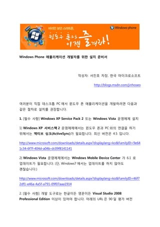 Windows Phone 애플리케이션개발자를 위한 설치 준비서