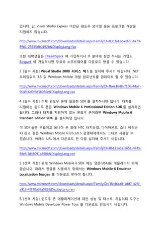 4. [필수 사항] 이제 윈도우 폰에 필요핚 SDK 를 설치하시면 됩니다. 터치를