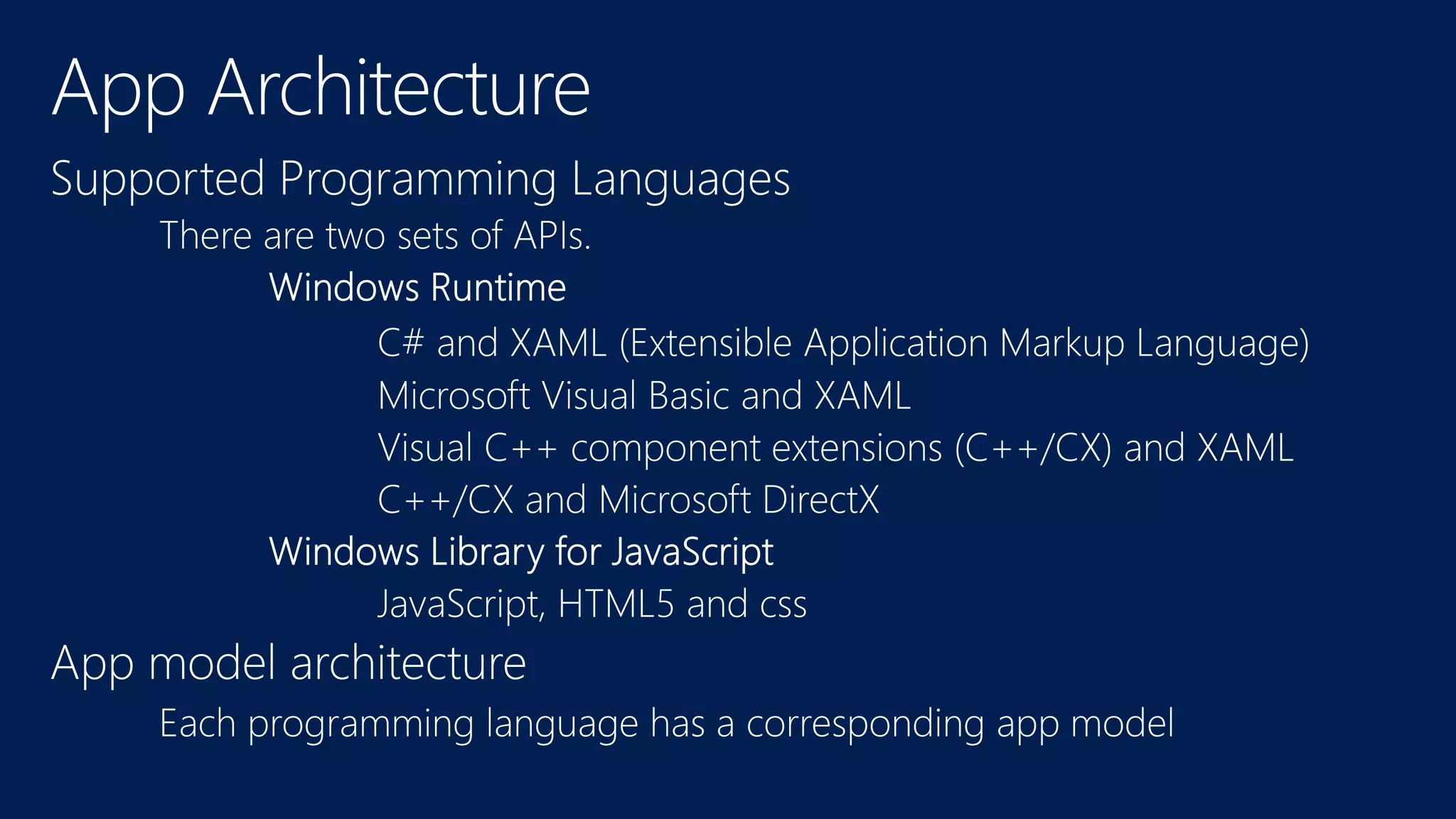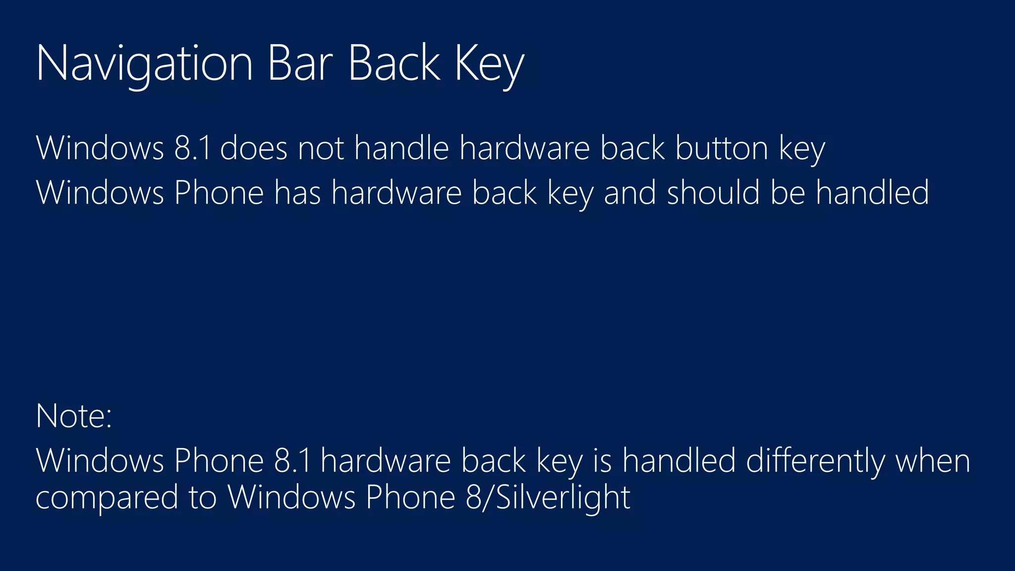This document provides an overview of Windows Runtime apps and navigation between pages in a Windows Runtime app. It discusses how apps are suspended and resumed, and how the navigation frame is used to navigate between pages using the Frame.Navigate method. It also describes how the hardware back button can be handled to navigate back or close secondary UI elements on a page.