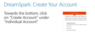 These slides will walk you through how to register as a developer for the Windows 8 and Windows Phone platform.