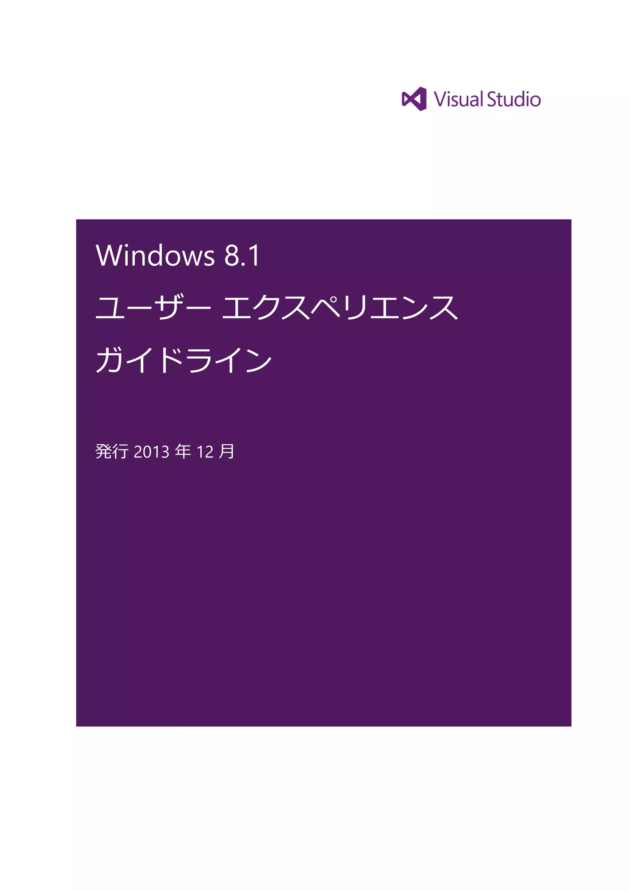 Windows 8.1における利用シーンを想定し、ユーザーにとって親しみやすく、便利で楽しいアプリケーションをデザインするためのガイドラインです。Windows 8.1で提供されている機能の望ましい使い方、注意点、推奨されない使い方などが詳細に解説されています。