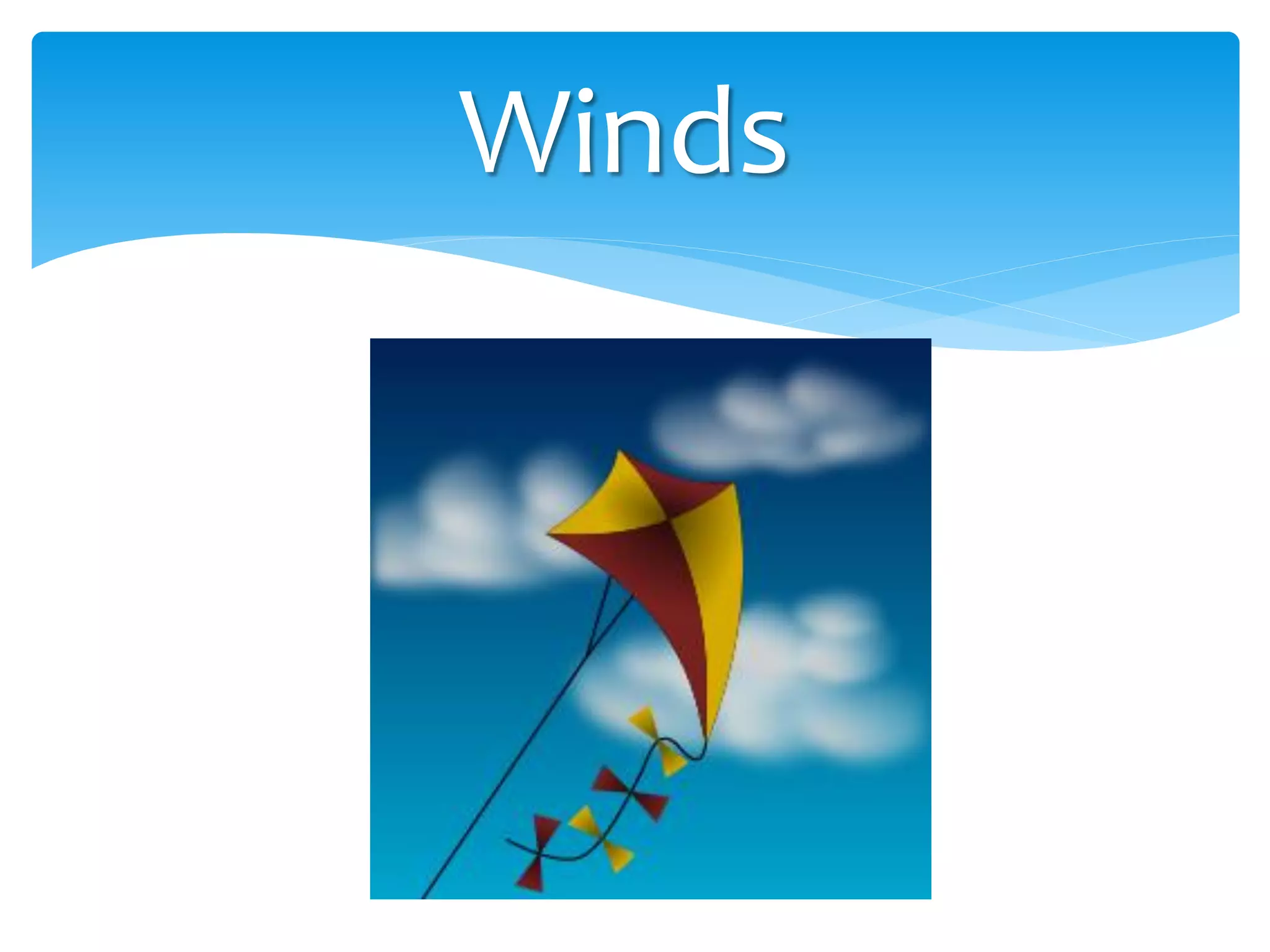 Winds are caused by differences in air pressure resulting from uneven heating of the Earth's surface by the sun. Warm air at the equator rises and cooler air from the poles moves in to replace it, creating global convection currents. These convection currents form circular wind patterns called prevailing winds, with easterly winds near the equator and westerly winds at mid-latitudes blowing toward the poles. The rotation of the Earth causes these winds to curve due to the Coriolis effect.