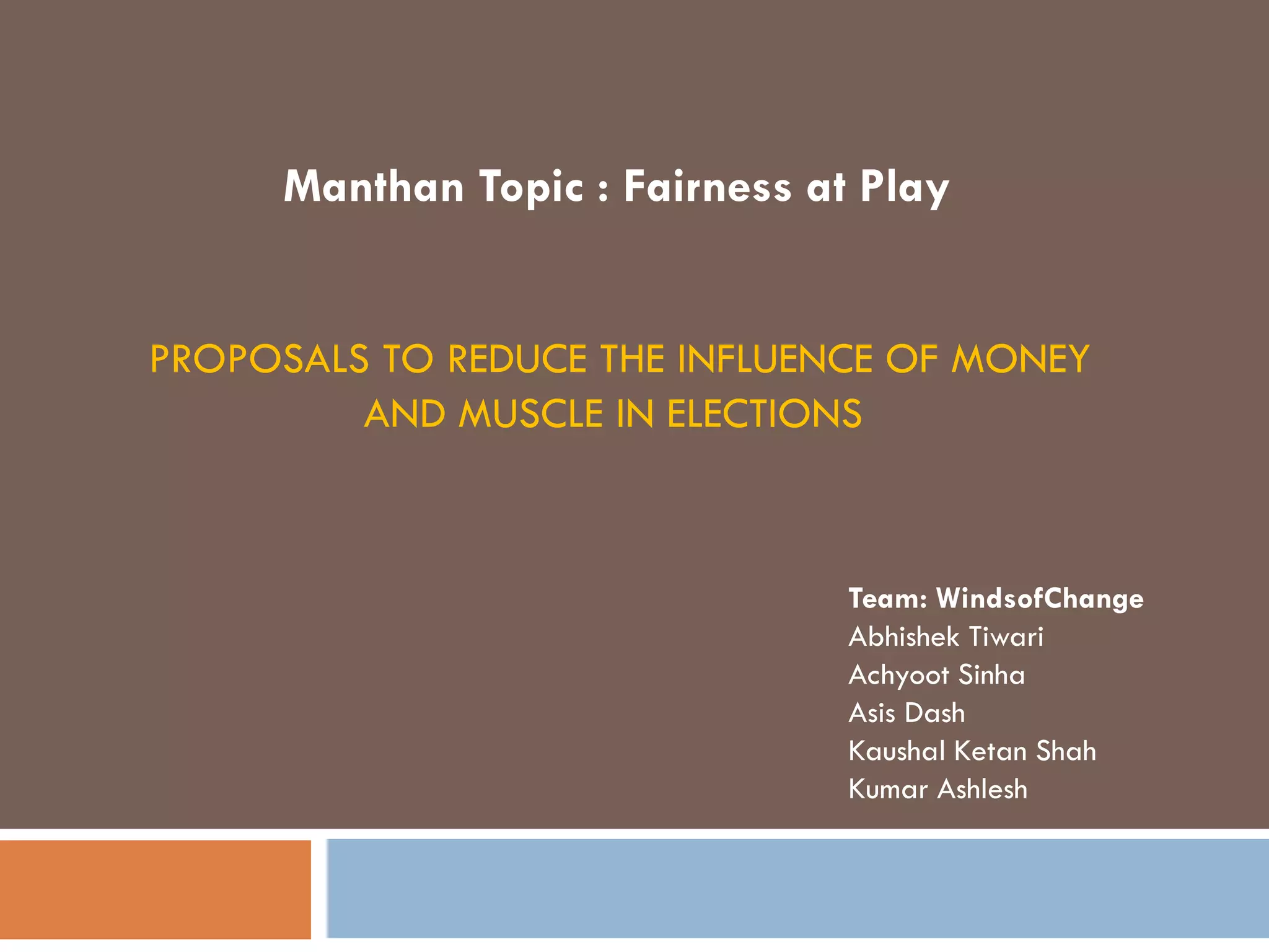 The document proposes several measures to reduce the influence of money and muscle in Indian elections. It notes that the average wealth of MPs has increased substantially in recent years. It suggests increasing voter participation, regulating monetary contributions to political parties, having the Election Commission oversee donations and disbursements, allocating equal media time to all candidates, focusing on getting first-time voters to vote, reforming vote counting procedures to adjust votes based on a candidate's legal issues, and adopting approval voting and other administrative reforms. Challenges to implementation are acknowledged but increasing awareness of needed reforms is seen as an important first step.