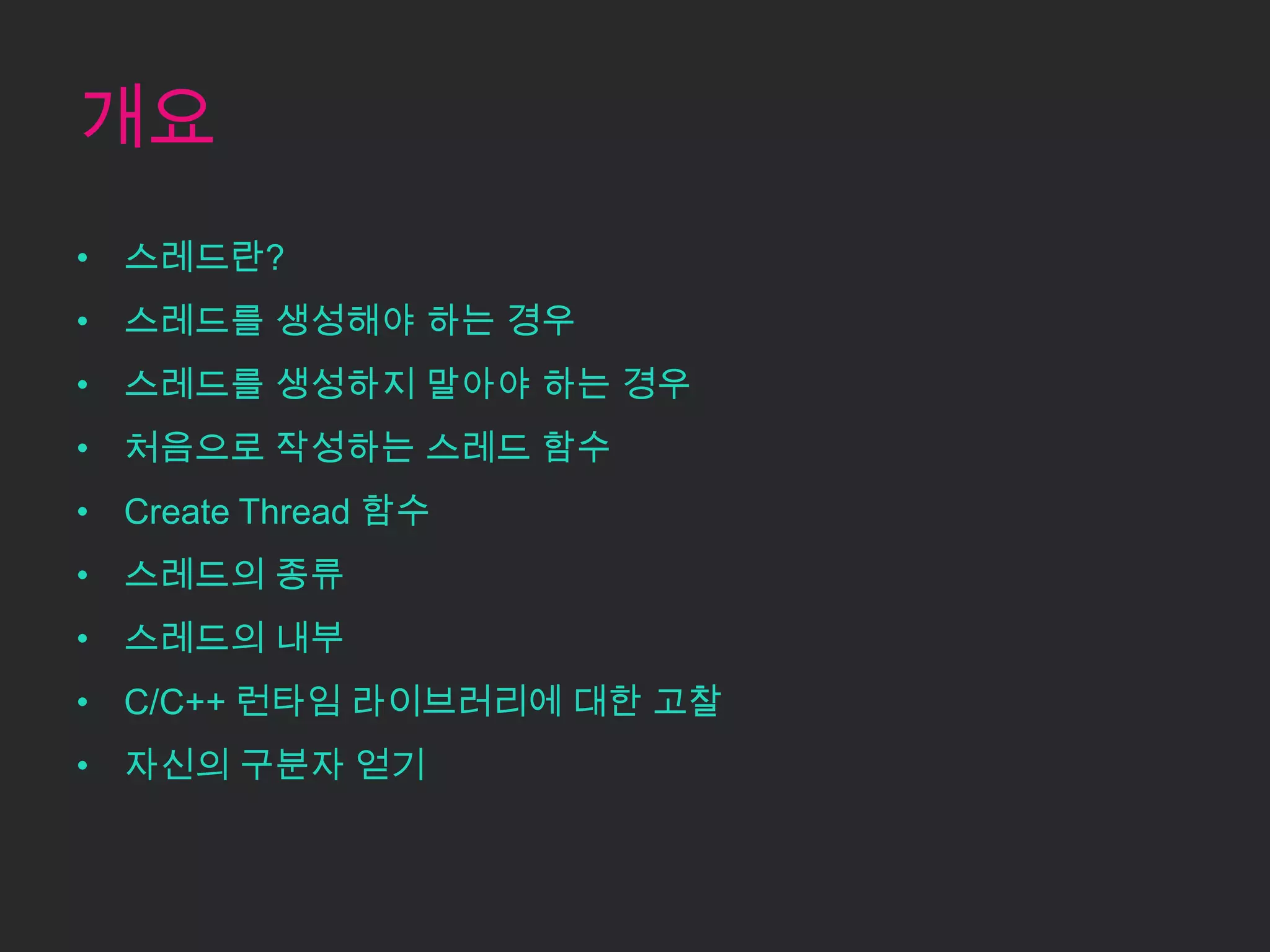 – C/C++런타임 라이브러리가 제공하는 _beginthreadex를 호출해 주면 된다.