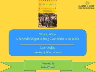 The document presents a summary of the nonprofit organization Wine to Water, founded by Doc Hendley, focused on providing clean water to communities in need worldwide. It outlines Hendley's journey from a bartender to an advocate for clean water, detailing his efforts in regions like Darfur and his achievements in implementing sustainable water initiatives. The presentation emphasizes the importance of passion, hard work, and collaboration in addressing global water crises.