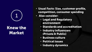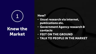 The document discusses strategies for achieving initial success in business, referred to as a 'first win'. It emphasizes the importance of leveraging this initial success to learn about the market, develop contacts, and gain credibility before expanding into new customers, products, and geographical areas.