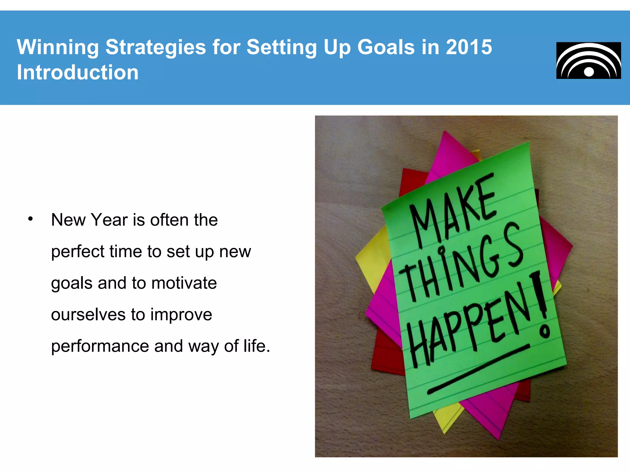 The document provides strategies for successfully setting and achieving goals in 2015. It notes that while many people set goals at the new year, few actually achieve them due to setting unrealistic or overly ambitious goals. The document recommends setting specific, measurable, and realistic goals. It also suggests creating a plan of action, recruiting support from others, and establishing milestones to stay motivated. Proper goal setting can help improve performance and quality of life, but goals also require focus, effort and preparation to achieve.