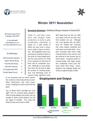 This quarter's activity focused on cash flow planning for future needs such as retirement withdrawals, college expenses, and other obligations. Cash flow planning can address a range of future needs and alleviate anxiety by providing a clear roadmap, though it requires an initial time commitment. Next quarter will focus on estate and legacy planning. The document also provides contact information and the location of important financial documents.
