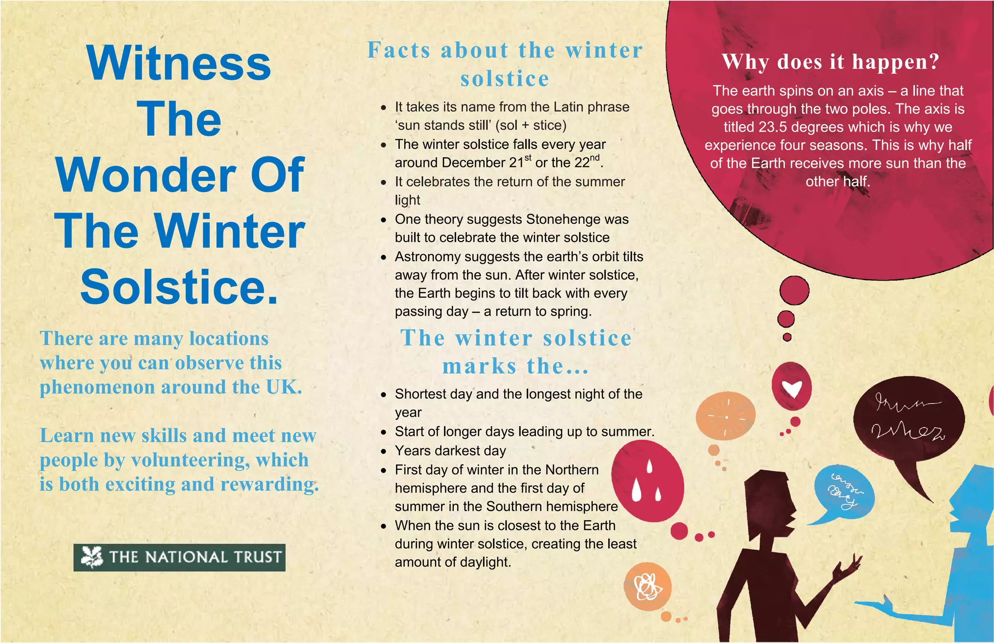 The winter solstice marks the shortest day and longest night of the year, occurring around December 21st. It happens because the Earth's axis is tilted 23.5 degrees, resulting in half the planet receiving more sunlight at different times. After the winter solstice, the Earth begins tilting back towards the sun, signaling the start of longer days leading up to summer.