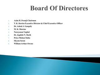 Wipro Limited is an Indian public company with the following board members: