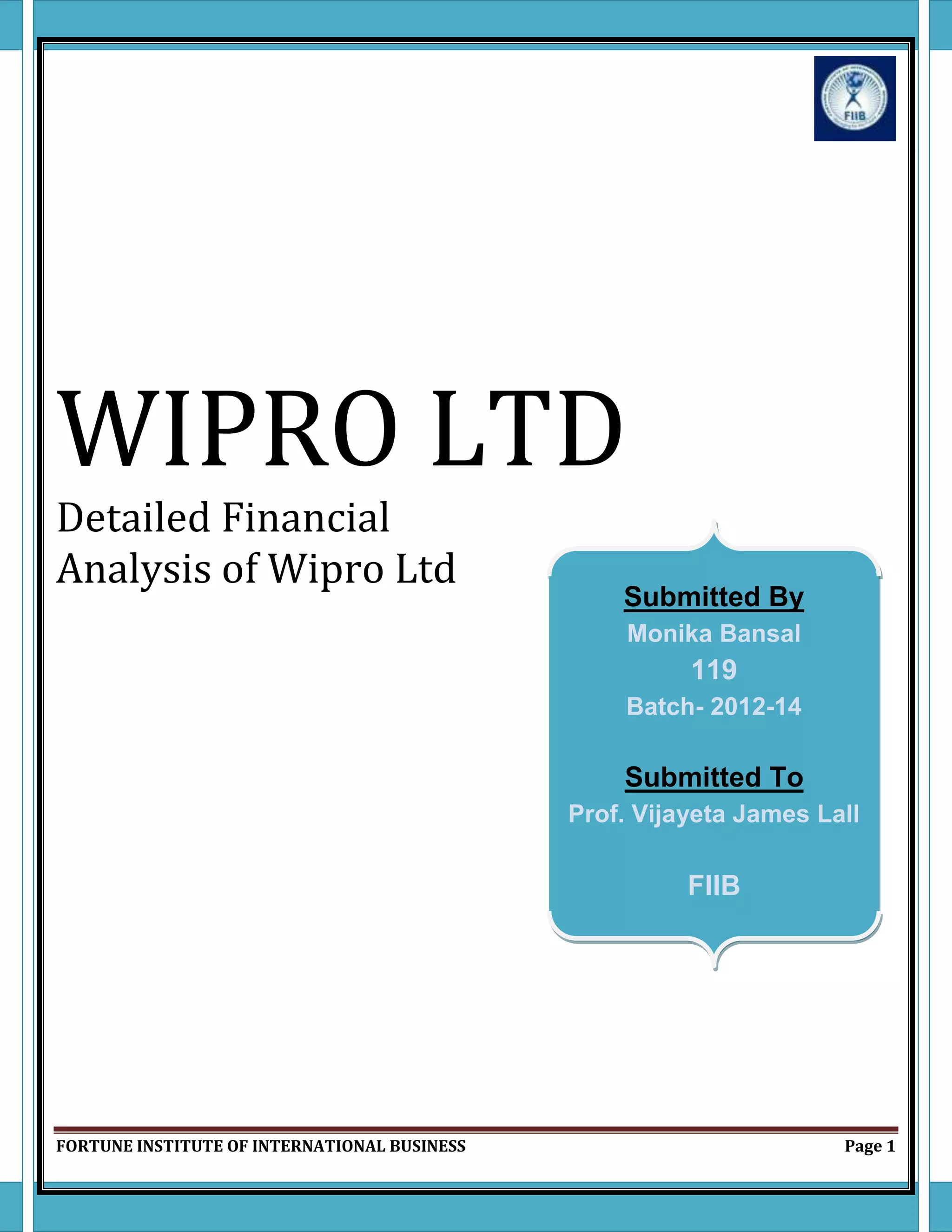 - A financial analysis of Wipro shows some decline in profitability ratios in recent years, but strong liquidity and financial leverage. Peer comparison finds Wipro