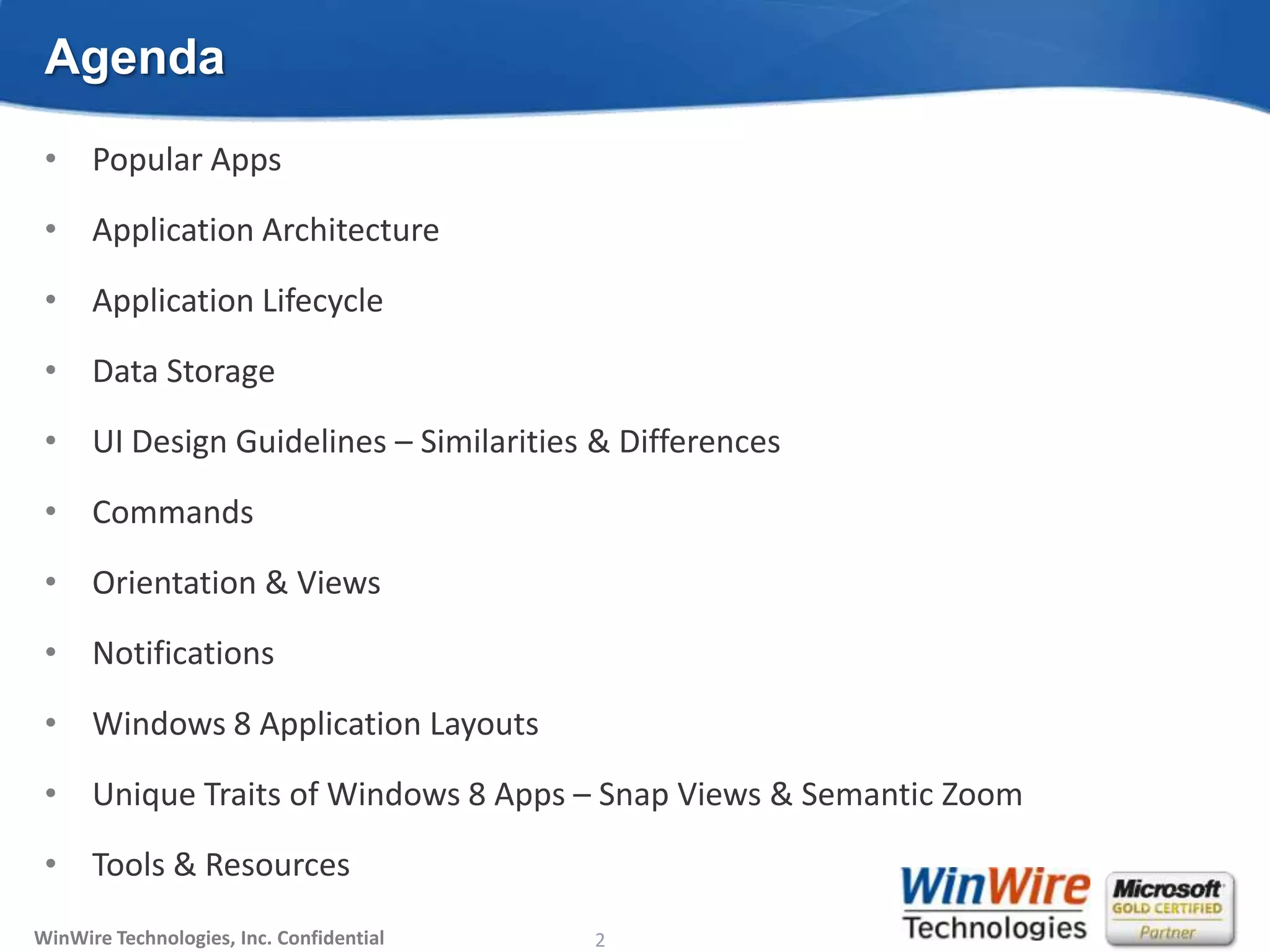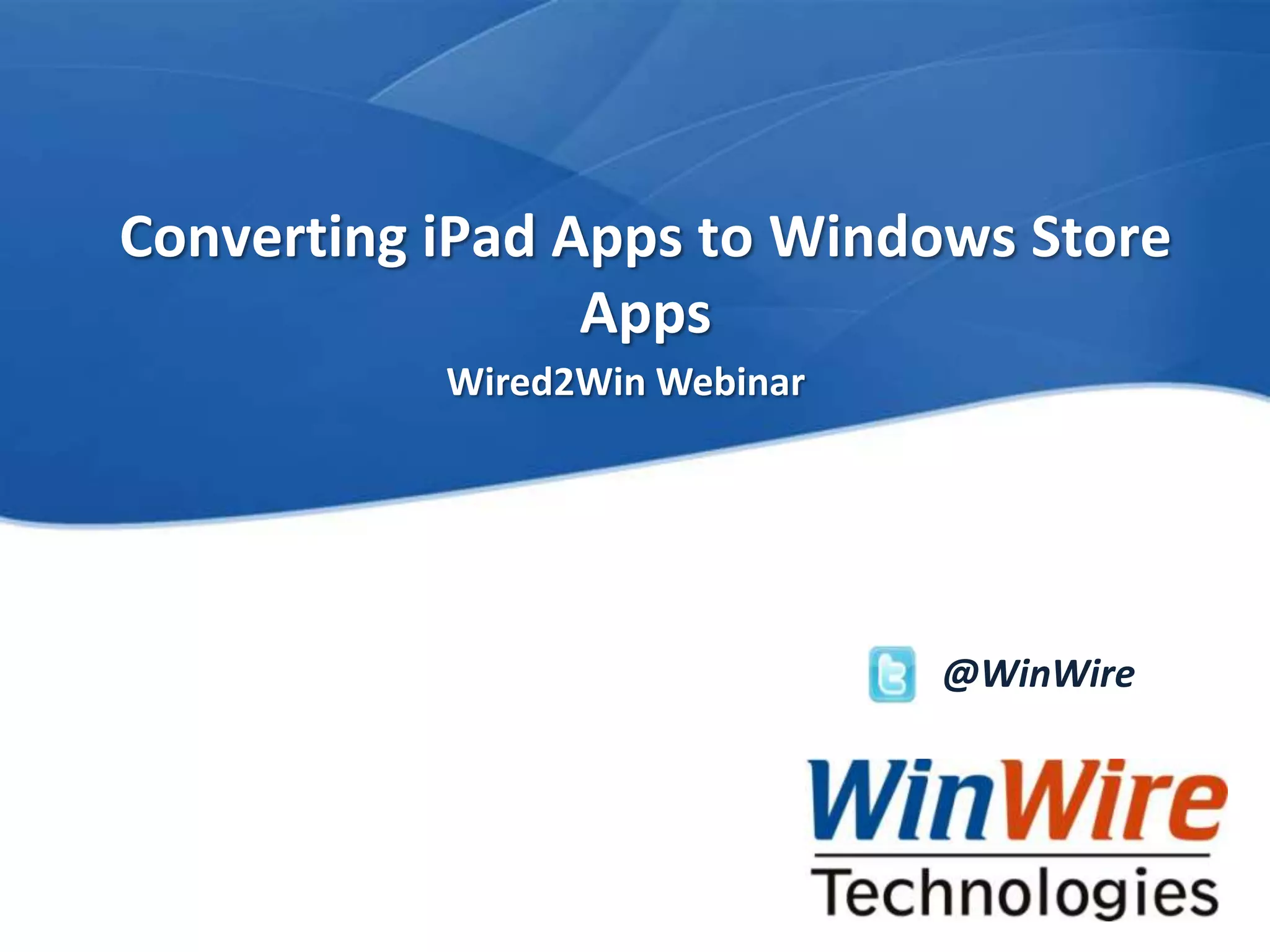 The document discusses converting iPad apps to Windows Store apps. It covers popular apps, application architecture, lifecycle, data storage, UI guidelines, commands, orientation, notifications, app layouts, and tools for Windows 8 app development. Unique traits like snap views and semantic zoom in Windows 8 are also examined.