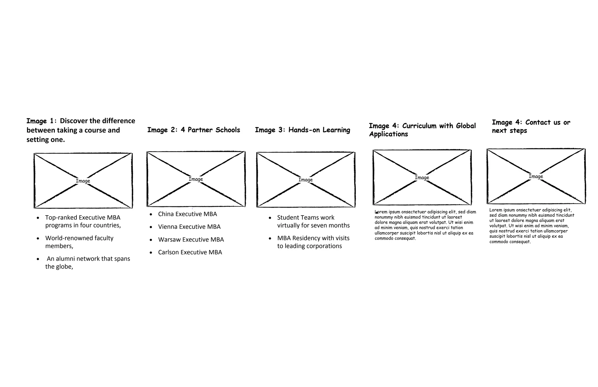 This document discusses an executive MBA program that is offered through partnerships with four schools across multiple countries. Students work virtually on team projects for seven months and also participate in a residency program with visits to leading corporations. The program curriculum has a global focus and contact information is provided to learn more.