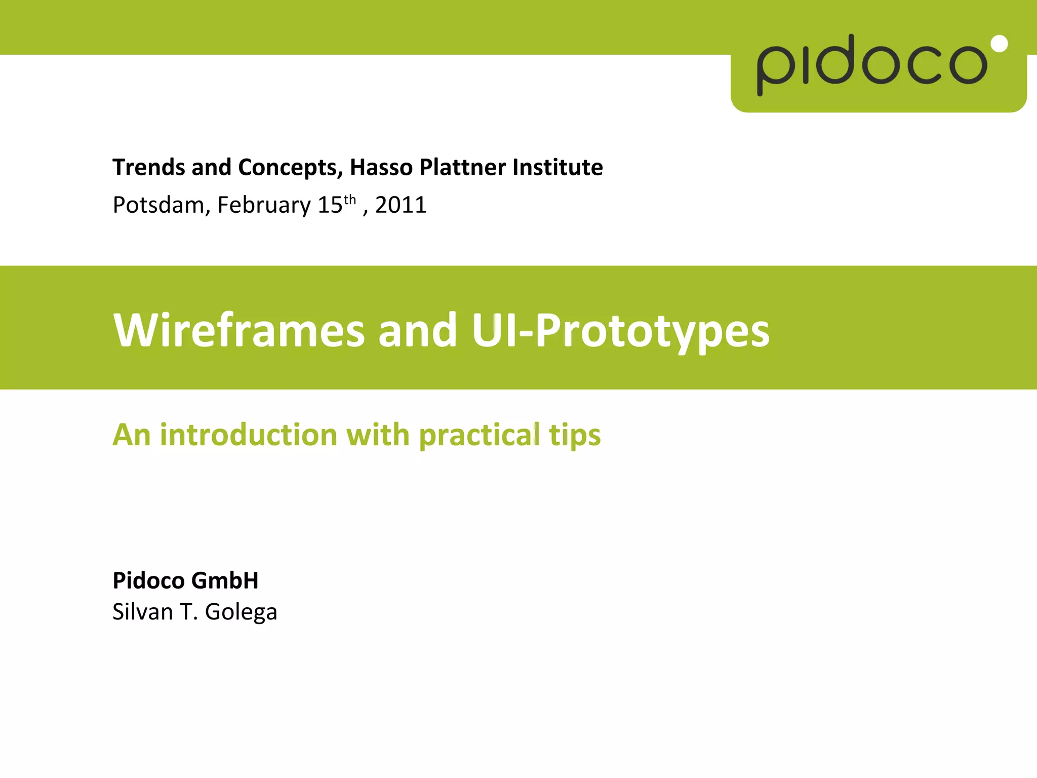 The document provides an overview of wireframes and UI prototypes, describing their importance in web development and user experience design. It includes definitions, types, purposes, and practical tips for creating effective wireframes and prototypes, emphasizing the need to focus on content and interaction during the prototyping process. Additionally, it highlights tools and strategies for developing successful prototypes, particularly for mobile interfaces.