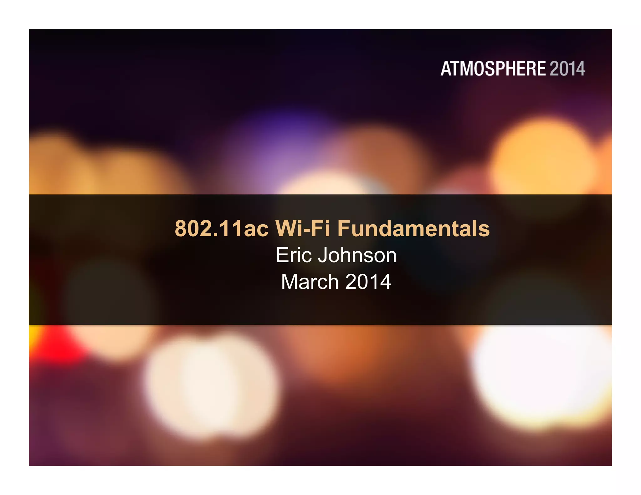 The document provides an overview of 802.11ac Wi-Fi technology, highlighting its advancements over the previous 802.11n standard, including wider channels, improved data rates, and explicit beamforming. It discusses technical aspects such as modulation types, channel frequencies, and the requirements for supporting the new standard, along with pros and cons of its implementation. The presentation also addresses the impact of infrastructure and equipment upgrades necessary for optimal utilization of 802.11ac features.