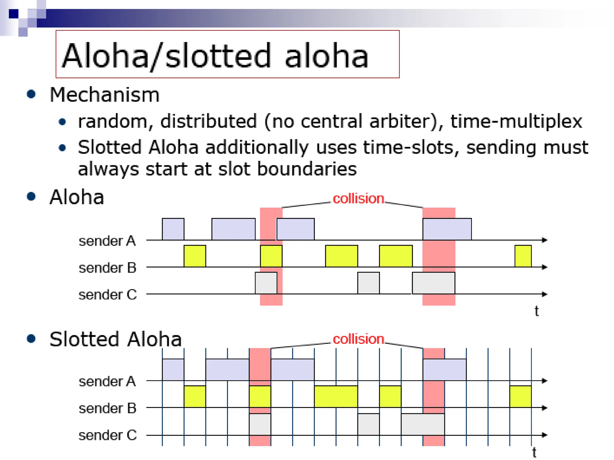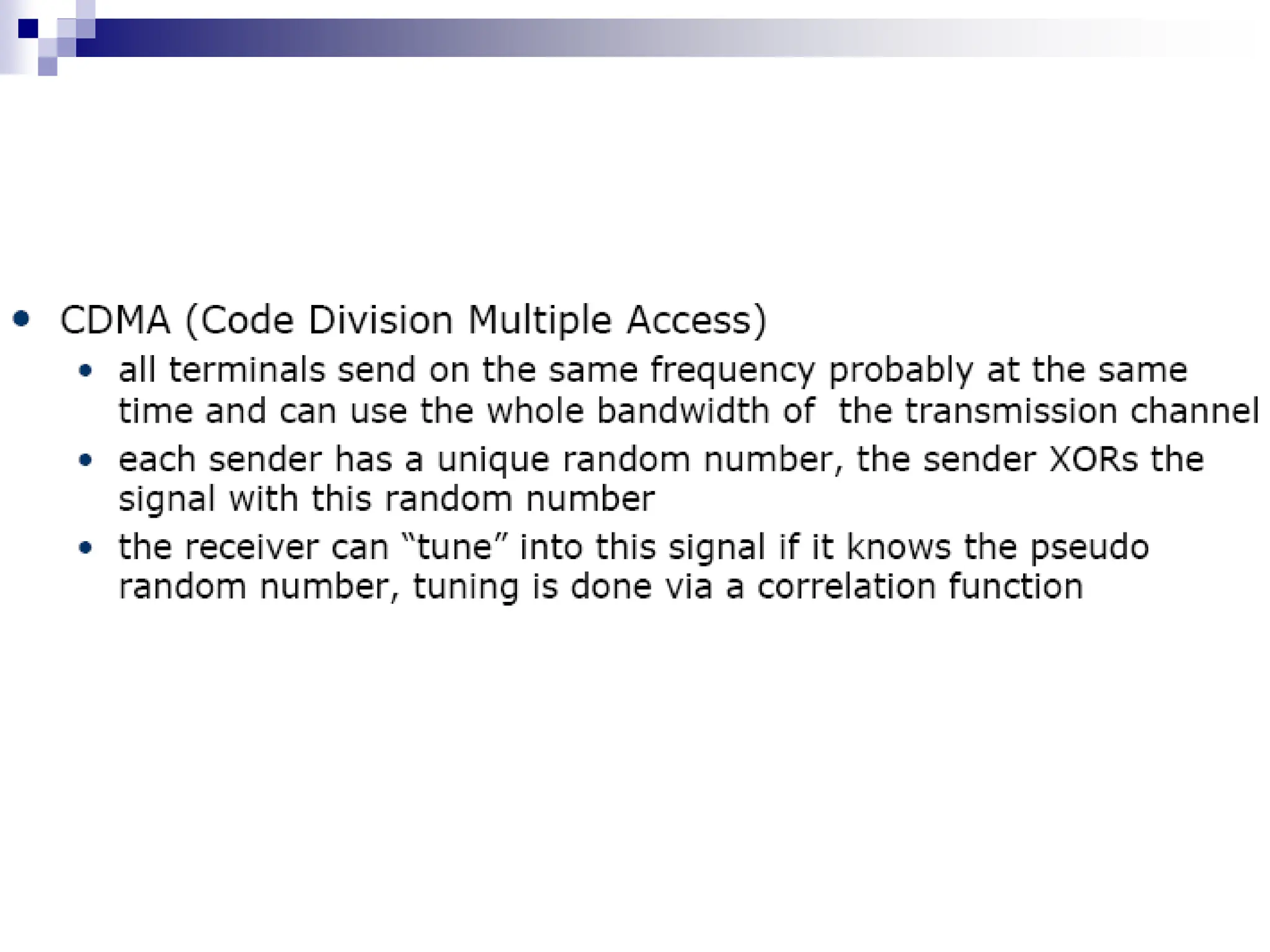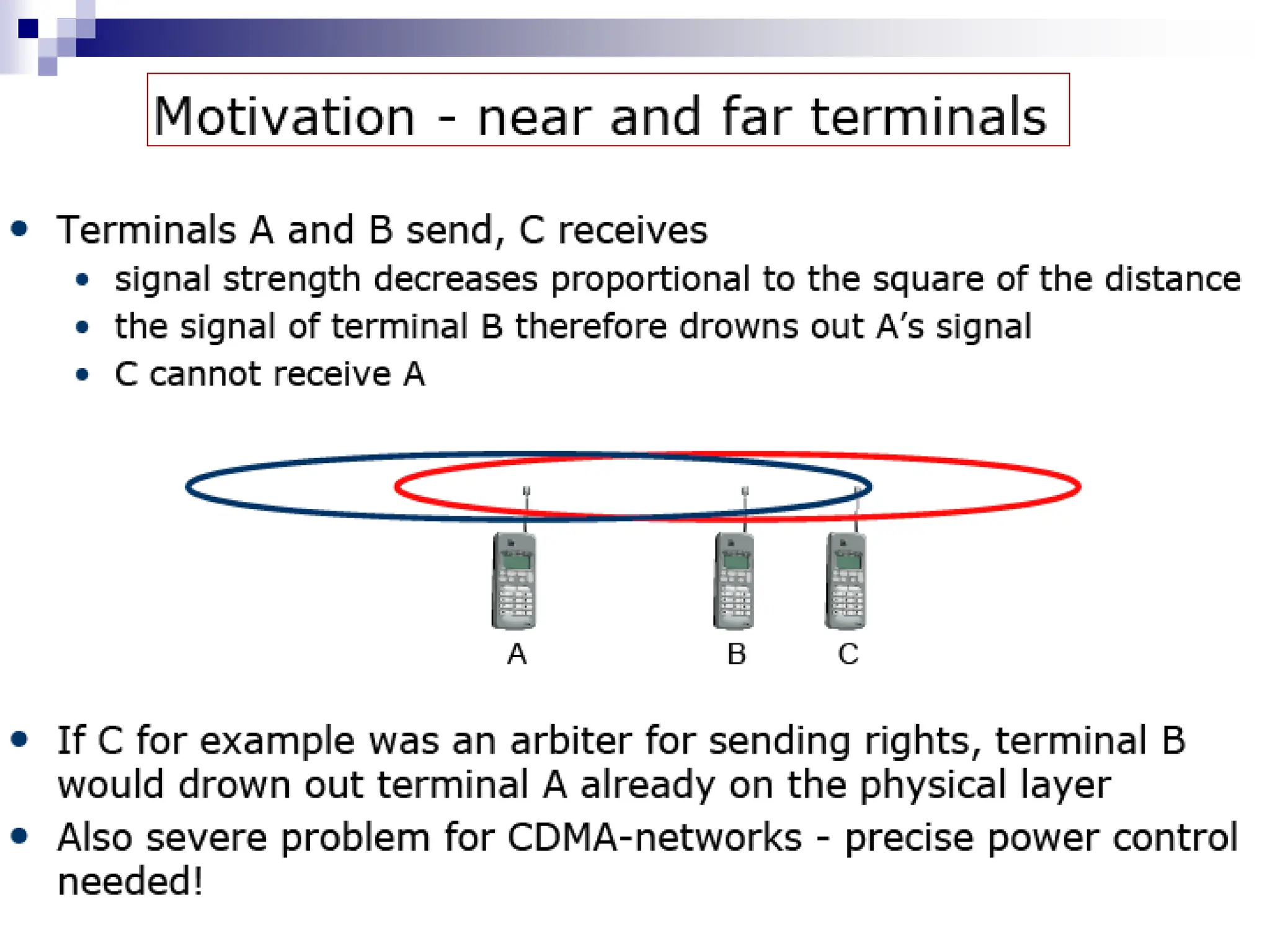 The document discusses specialized MAC protocols for wireless communication, focusing on the motivations behind multiplexing and various access methods, including SDMA, FDMA, TDMA, and CDMA. It explains how these methods enable multiple users to share a communication medium without interference while addressing issues like channel allocation, collision rates, and synchronization techniques. Additionally, it highlights specific protocols and variations within TDMA and CSMA, detailing their implementations and challenges.