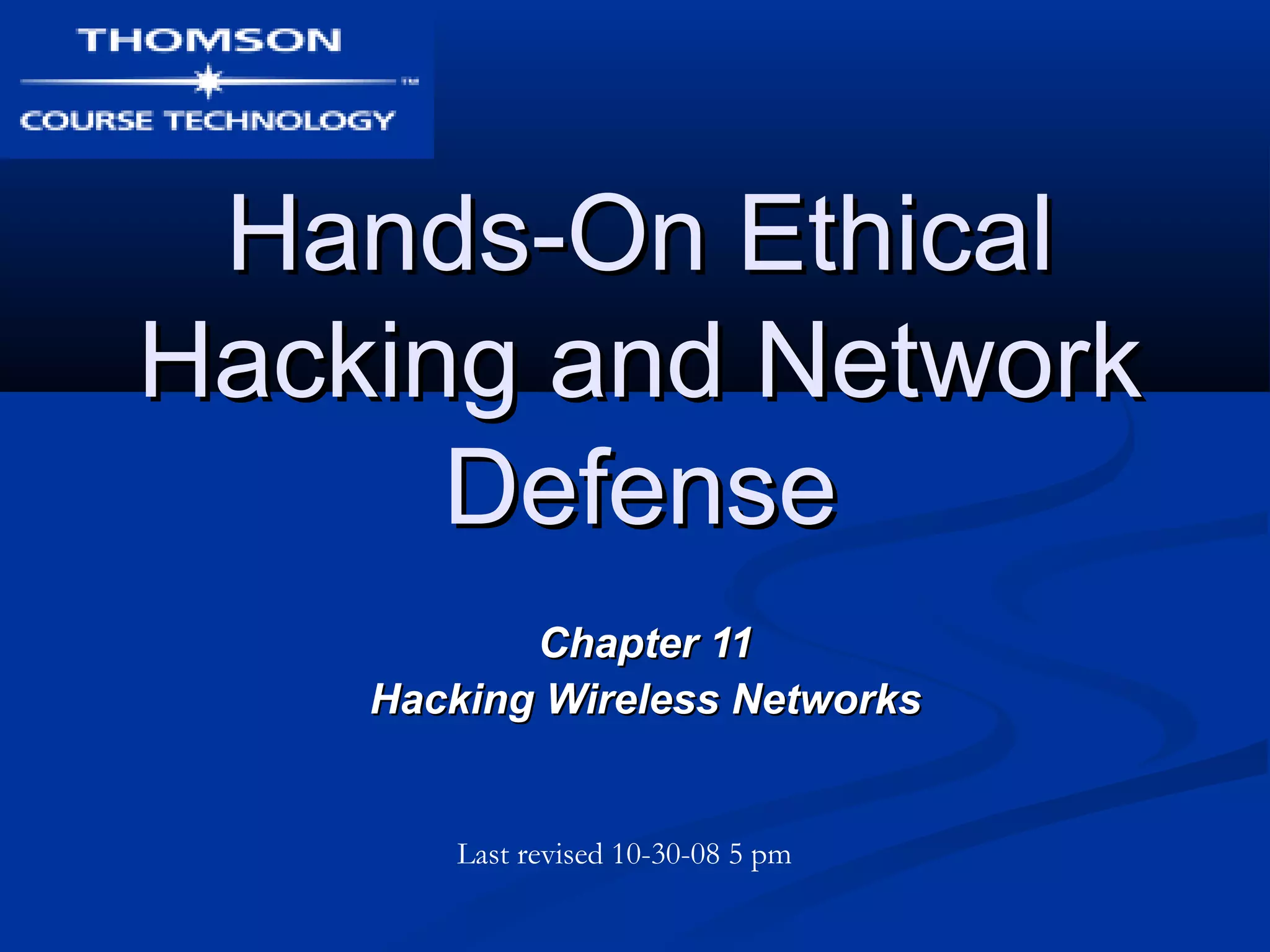 This chapter discusses hacking wireless networks. It explains wireless technology and standards such as 802.11. Authentication in wireless networks involves establishing that a user is authorized to use the network. Various wireless hacking tools and the process of "wardriving" are also described.