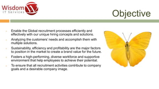 Wisdom IT Services India Pvt Ltd focuses on enhancing global recruitment processes through innovative solutions and a unique job portal, wisdomjobs.com, which hosts over 22 million profiles. Their Pragnya Meter tool aids in assessing job seekers' skills and facilitates efficient talent acquisition, while their e-university provides extensive resources for job seekers' preparation and practice. The company emphasizes sustainability, efficiency, and a diverse workforce to ensure alignment with company goals and a strong market presence.