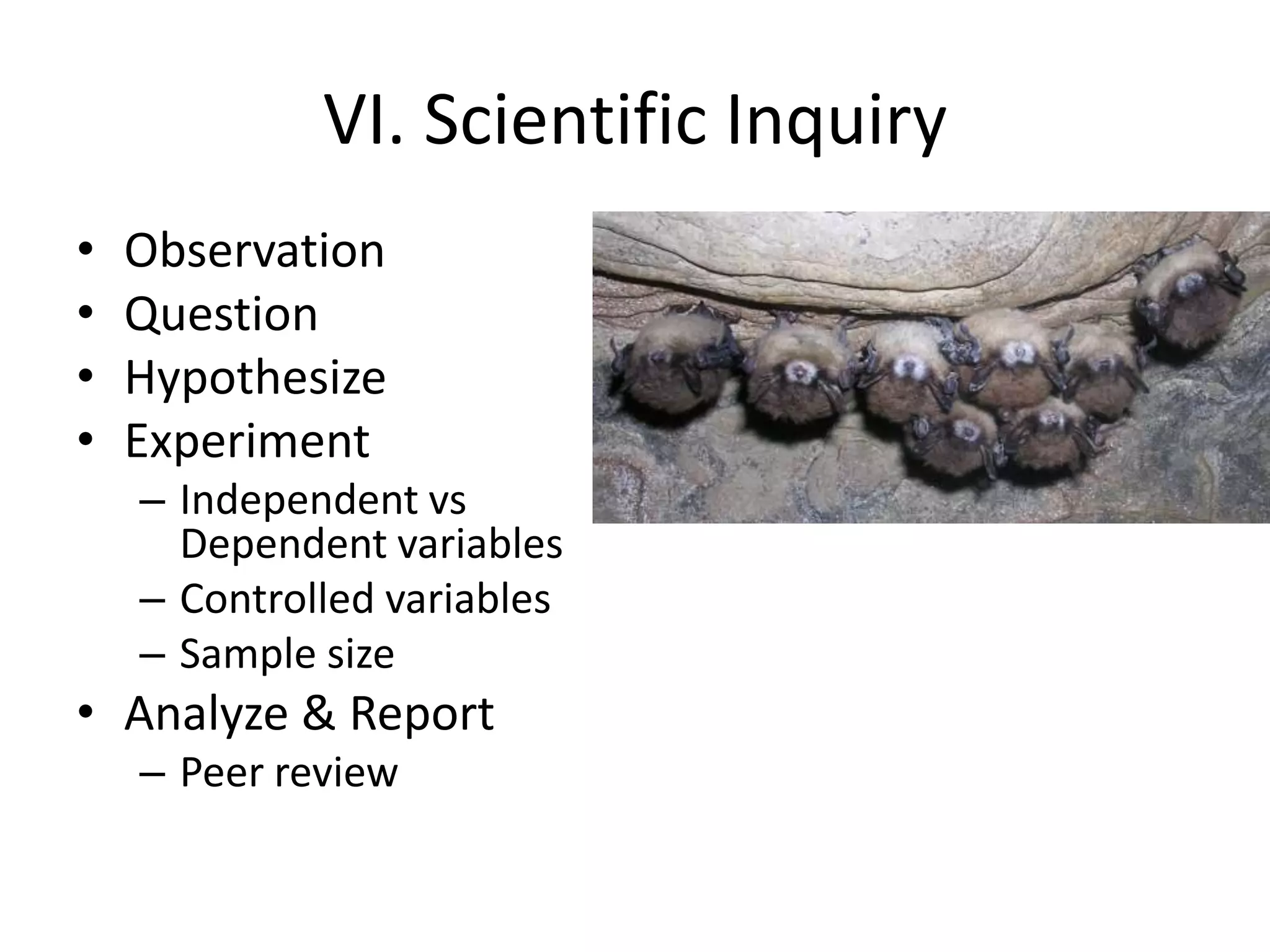 Scientific inquiry involves observing a phenomenon, asking questions about it, hypothesizing potential explanations, designing experiments to test hypotheses by manipulating independent variables and controlling other factors, analyzing results, reporting findings, subjecting work to peer review, and distinguishing between hypotheses, which are tentative explanations requiring further testing, and theories, which are well-established explanations supported by repeated testing.