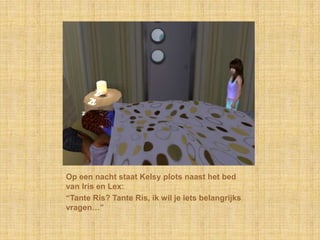 Op een nachtstaat Kelsy plots naast het bed van Iris en Lex:“Tante Ris? Tante Ris, ik wil je iets belangrijks vragen…”