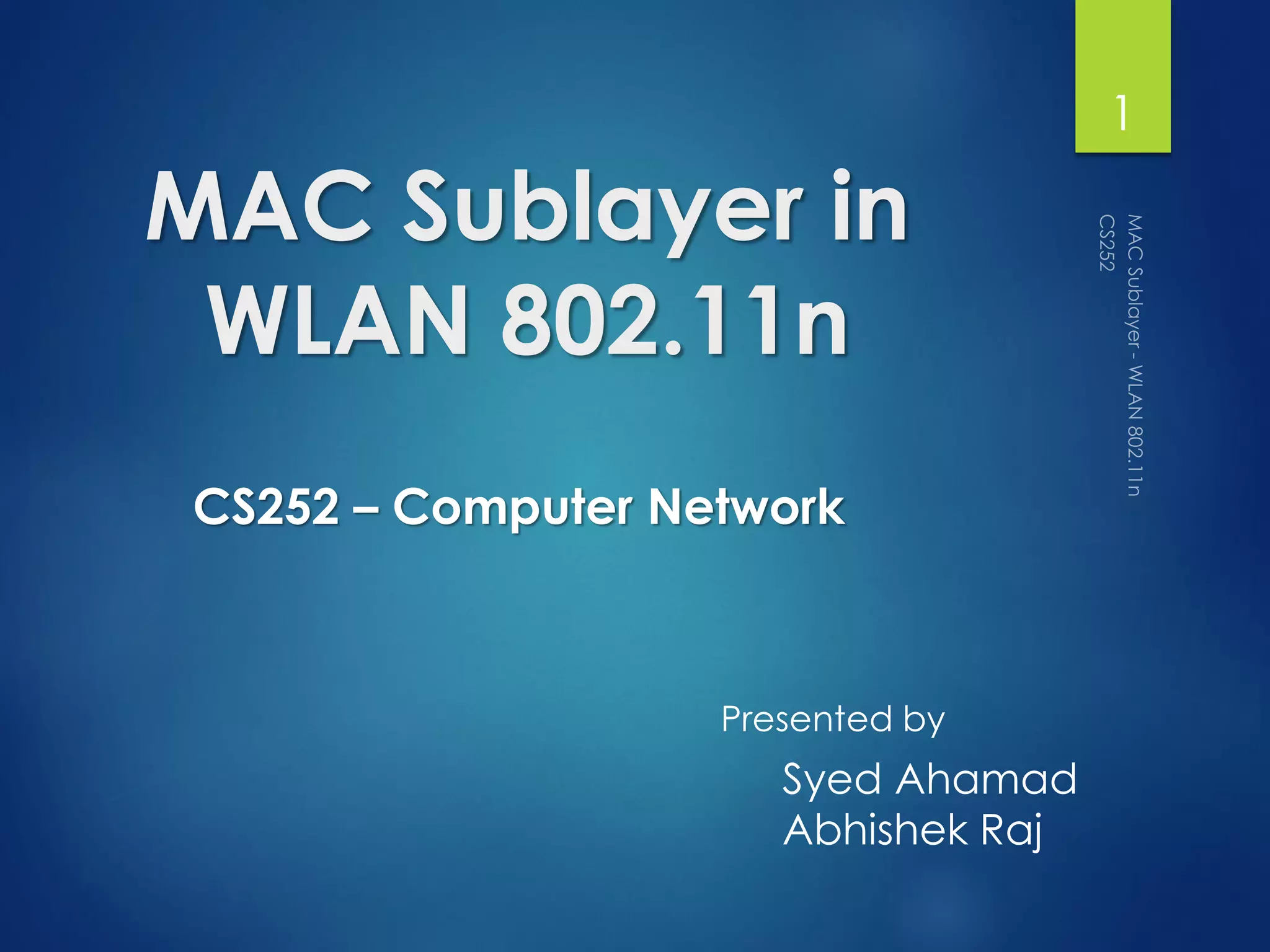 The document discusses the MAC sublayer in the 802.11n wireless LAN standard. It describes how the 802.11n MAC sublayer aims to improve protocol efficiency, support quality of service standards, and minimize contention overhead through techniques like selective retransmission. It also examines how the 802.11n MAC protocol operates in different modes and addresses problems like hidden and exposed nodes through physical and virtual sensing methods.