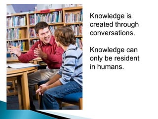 This document contains the presentation slides for Kathleen Johnson's talk on innovations in school librarianship. The presentation discusses 7 areas of innovation: physical and virtual library spaces, the librarian's role as a learning specialist, transliteracy skills, embedded librarianship models, new opportunities for professional development, R. David Lankes' concept of a new librarianship focused on knowledge and learning, and developing personal learning environments centered on each student. The presentation provides examples and resources to illustrate changes in how libraries and librarians can better support student learning in the digital age.