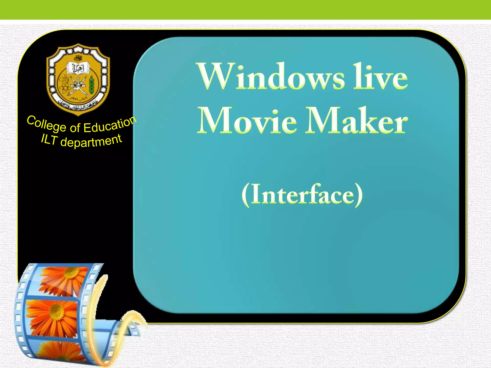 Windows Live Movie Maker is a video editing software that allows users to create and edit video projects. It is intended to replace Windows Movie Maker and allows users to publish videos to Windows Live SkyDrive, Facebook, YouTube, and Flickr. The software has various tools and options to edit videos, including adding titles, captions, credits, and visual effects. It also allows users to customize aspects like themes, transitions, audio, and project settings.