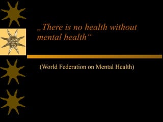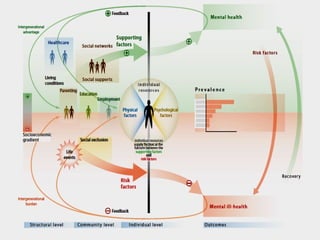 The document discusses mental health and illness, including definitions, causes, symptoms, stigma and discrimination, and the Indian Mental Health Act of 1987. Some key points covered include: