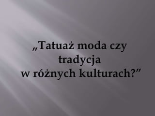 było mówić o ich artyzmie. Dzisiaj tatuaż ma co piąty mieszkaniec