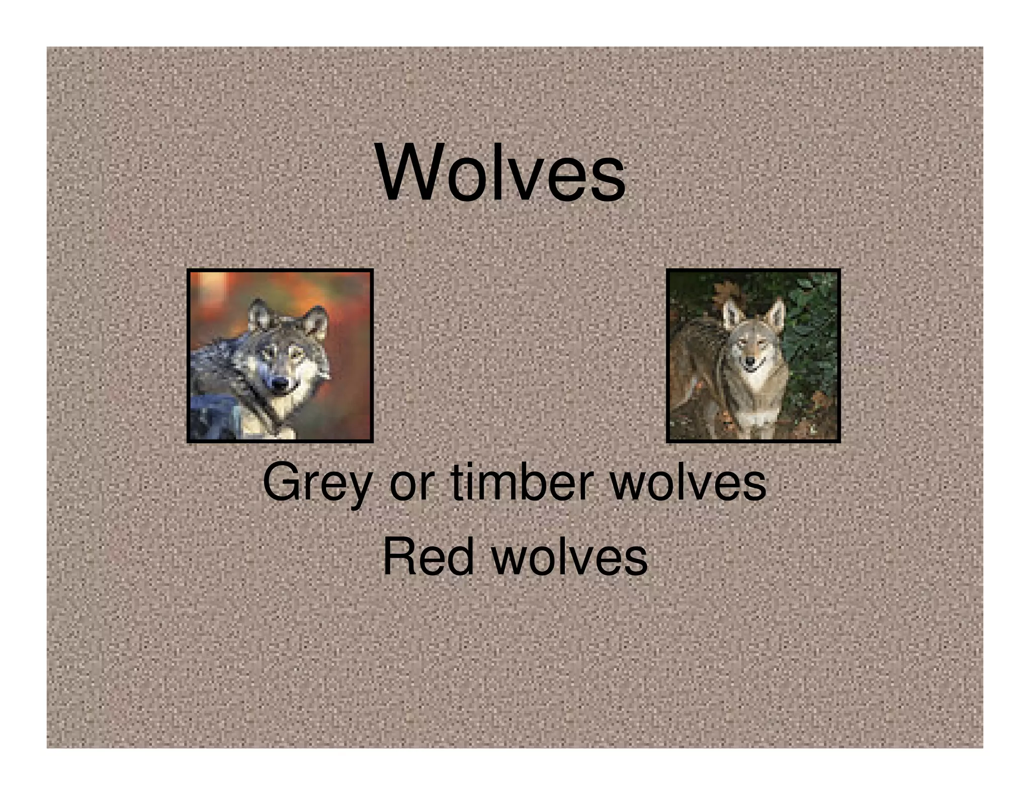 Grey wolves were once widespread across North America but were hunted extensively and nearly driven to extinction. Conservation efforts have allowed their populations to recover in some areas of their former range. Grey wolves live in packs, communicate through howling and scent marking, and play a vital role in ecosystems by preying on large hoofed animals. Red wolves are smaller than grey wolves and live in forests, swamps, and coastal prairies, hunting small mammals and occasionally deer. Overhunting caused red wolves to be declared extinct in the wild by 1987, though captive breeding programs have helped reintroduce them to protected areas.