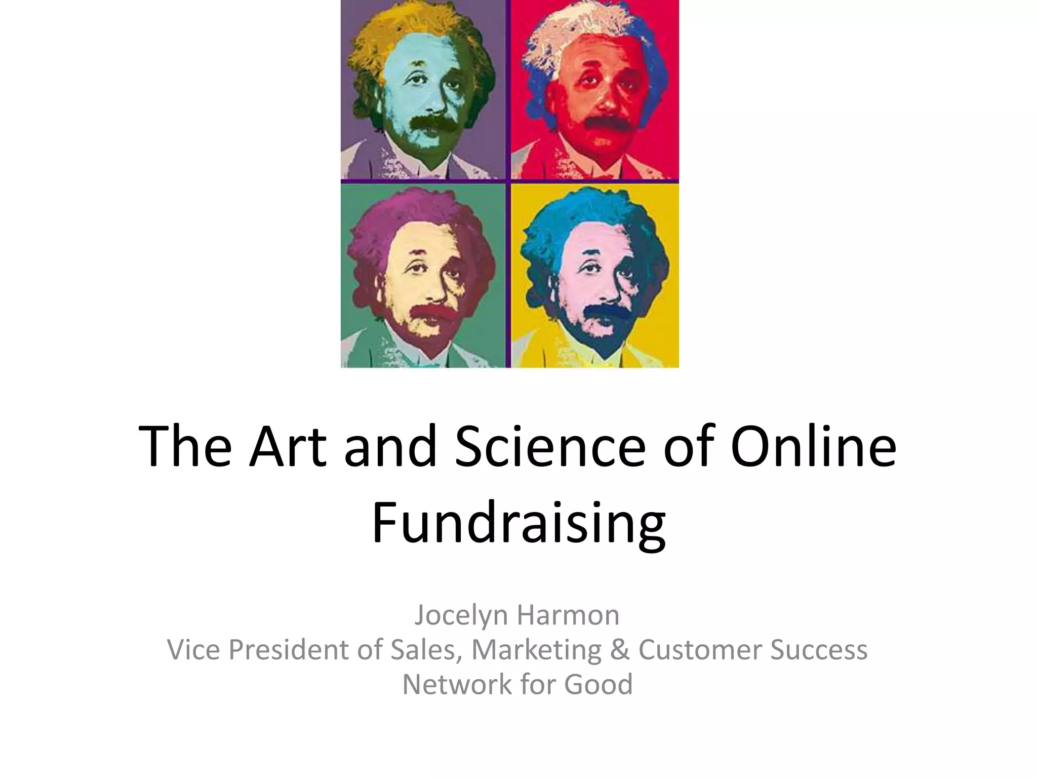 The document summarizes key strategies for online fundraising presented by Jocelyn Harmon of Network for Good. It discusses trends in online giving and strategies such as having an optimized donation page on a nonprofit's website, growing an email list, leveraging social media and personalization. Harmon emphasizes the importance of being strategic with technology and focusing on acquiring donors and retaining existing donors through customized engagement online.