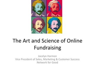 The document summarizes key trends in online fundraising for nonprofits. It discusses how nonprofits can [1] leverage technology strategically by improving their websites and donation pages, [2] embrace social giving through platforms like Crowdrise and Cause, and [3] personalize the donor experience. Resources and tips are provided on growing email lists, using social media, and making the most of mobile opportunities. Questions are also posed to help nonprofits assess how they can better achieve their digital fundraising goals.