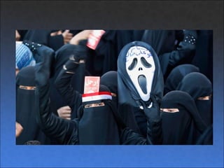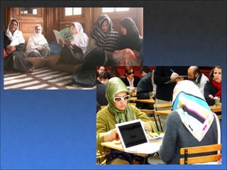 This document discusses the rights and roles of women in Islam. It begins by providing historical context on women in pre-Islamic Arabia and then discusses how Islam elevated women's status and ensured their rights to equality and fair treatment. While Islam guarantees equality, it does not mandate uniformity or sameness between men and women. The document notes that some cultural practices differ from Islamic teachings and that interpretations of women's rights can vary between individuals. It provides examples of influential Muslim women from various fields and countries to illustrate women's empowerment under Islamic principles.