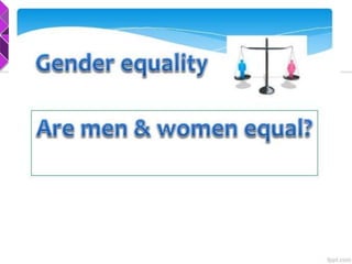 Ang dokumento ay naglalaman ng mga kategorya at isyu patungkol sa kasarian, tulad ng sex at gender, sexual orientation, at karahasan sa kababaihan. Tinalakay rin ang mga halimbawa ng diskriminasyon at karahasang nararanasan ng LGBTQ+ at kababaihan, pati na rin ang mga istadistika ng karahasan sa gender. Ang mga batas tulad ng CEDAW at Anti-Violence Against Women and Their Children Act ay inilalarawan bilang mga hakbang laban sa mga isyu sa kasarian at ang pagkakamit ng pantay-pantay na karapatan.
