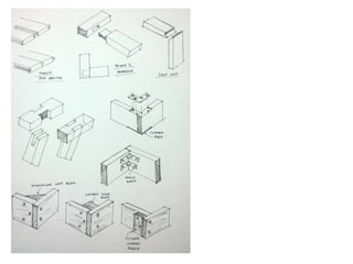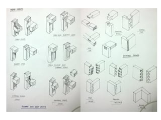 The document discusses the characteristics and uses of different types of wood, classifying them into hardwoods, softwoods, and manufactured boards, each with distinct properties. It details various wood species, their origins, and suitable applications in furniture and construction, alongside joining methods involving adhesives, screws, and nails. Additionally, the text covers knock-down fittings, emphasizing their utility in assembling flat-pack furniture and providing strong yet removable joints.