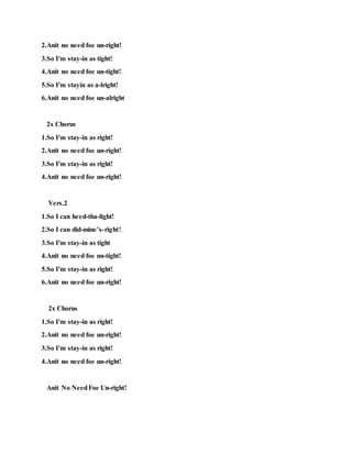 1. The document appears to be lyrics for four songs written by Murad Camarad Wysinger and others listed as copyright holders.