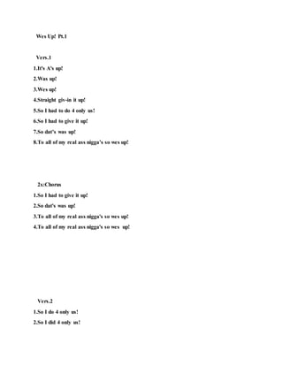 1. The document appears to be a hip hop album titled "Word 2 Tha Mutha! Pt.20" containing several songs and verses written by Murad Camarad and other listed artists.