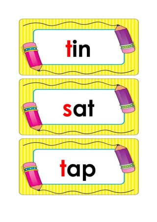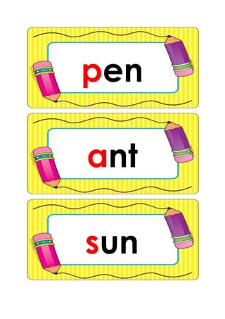 The document contains a list of 3-letter words in no particular order. There are over 100 words related to animals, objects, colors, foods, actions, and other common nouns and verbs. The words cover a wide semantic range but are short and simple in length and structure.