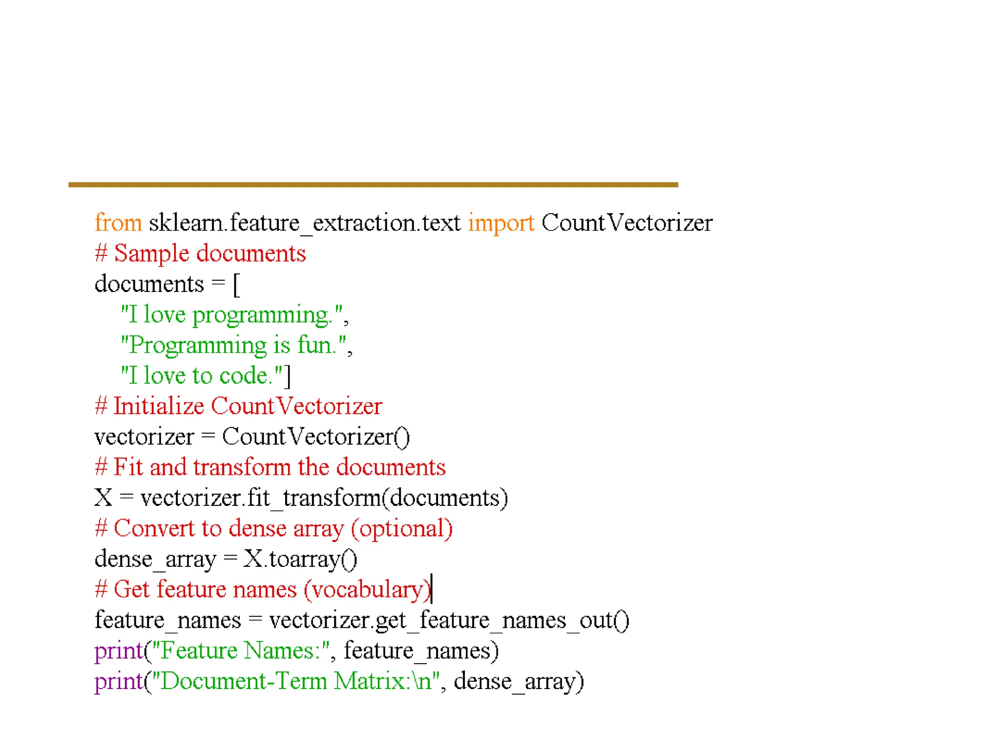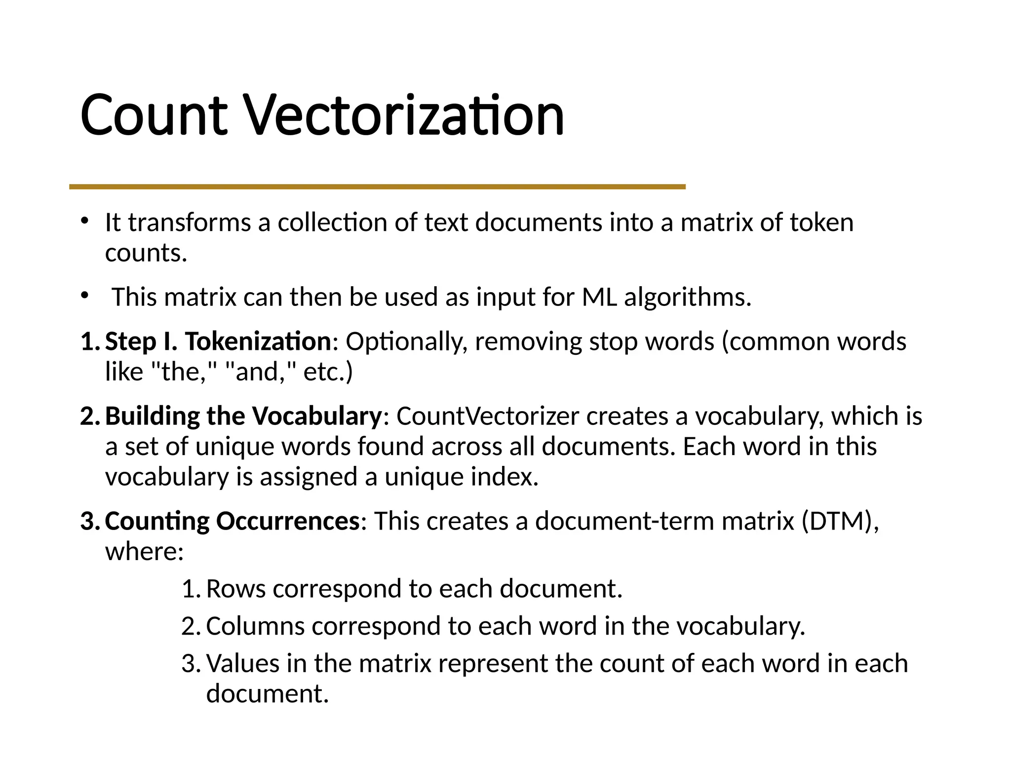 3.Counting Occurrences: This creates a document-term matrix (DTM),