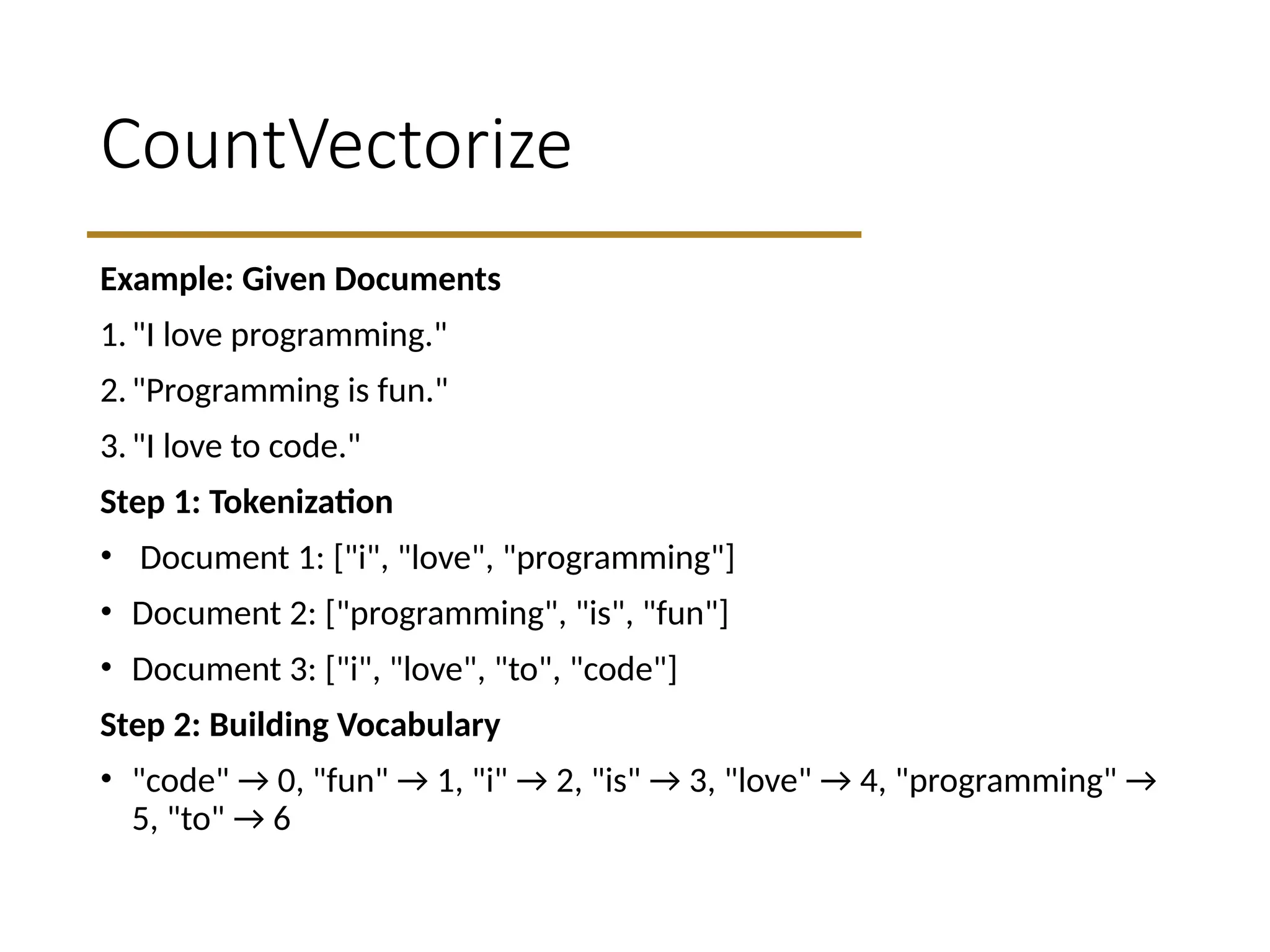2.Building the Vocabulary: CountVectorizer creates a vocabulary, which is