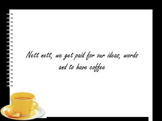 This document provides an overview of a communications consulting company called The Word Jockey. It outlines 3 main rules for good content: 1) Do not bore your audience, 2) Be factually and semantically accurate, 3) Be shareable. It then describes the company's services such as helping brands develop presentations, event scripting, copywriting, and social media services. Client examples are provided from industries like events, brands, publishers. Contact details are given at the end.