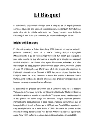 El basquetbol,popularment conegut com a bàsquet, és un esport practicat