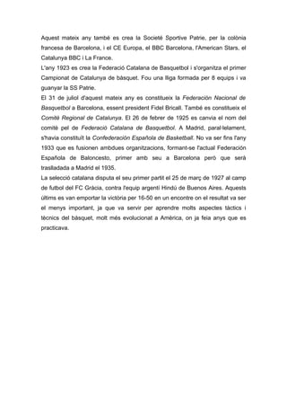 tirada obtingué el bàsquet. El primer equip català de renom conegut l'anomenat