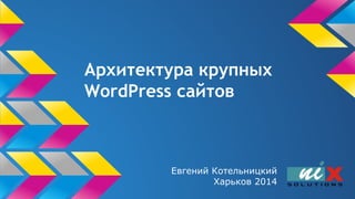 Документ обсуждает архитектуру крупных сайтов на WordPress, акцентируя внимание на важности простоты поддержки, быстродействия и стандартизации кода. Проблемы, связанные со сложностью разработки и поддержки больших сайтов, рассматриваются с точки зрения обработки ошибок, архитектурных решений и организации модулей. Также подчеркивается необходимость следования кодовым стандартам и оптимизации взаимодействия модулей для предотвращения конфликтов.