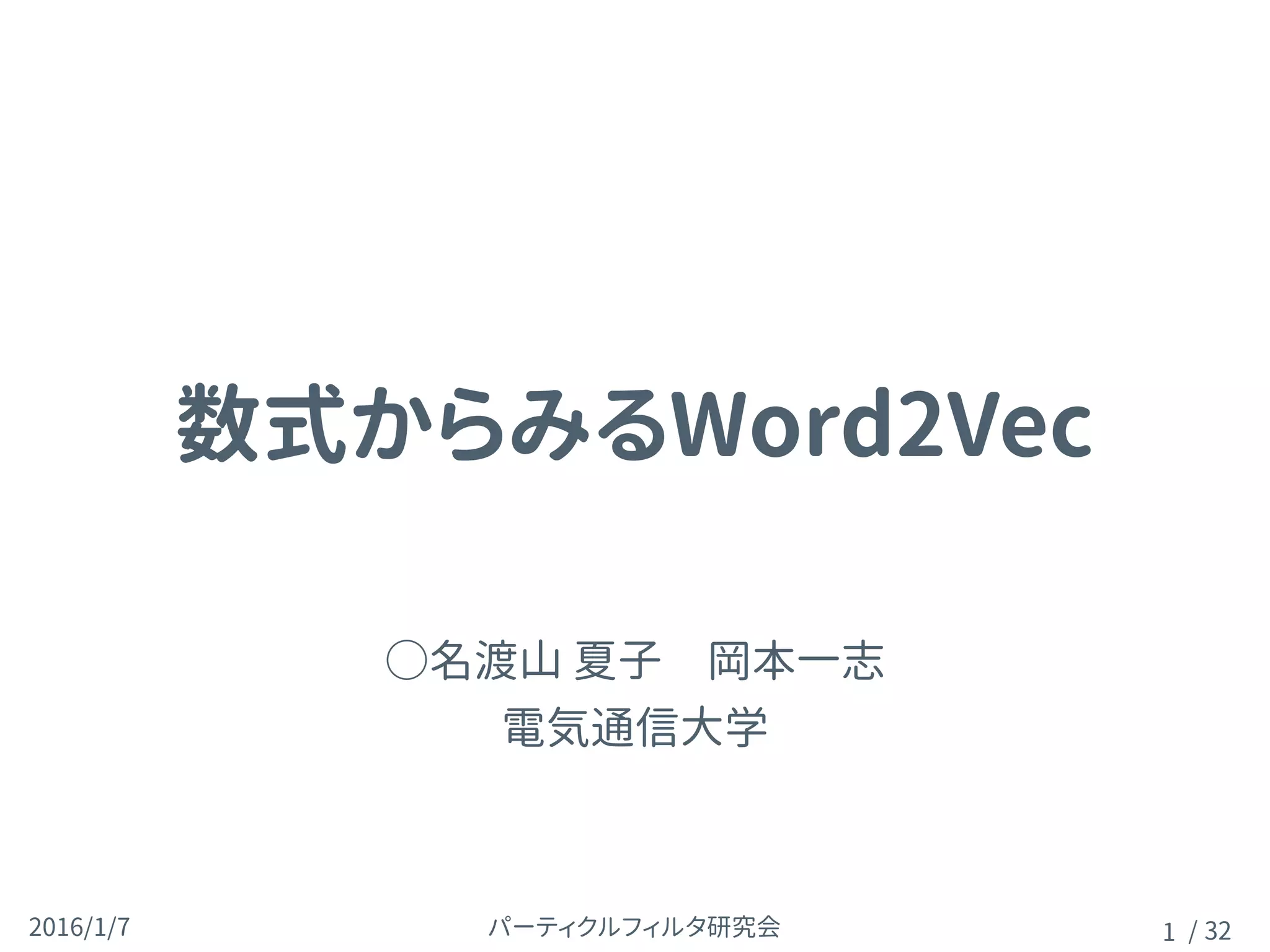 パーティクルフィルタ研究会2016/1/7 / 32