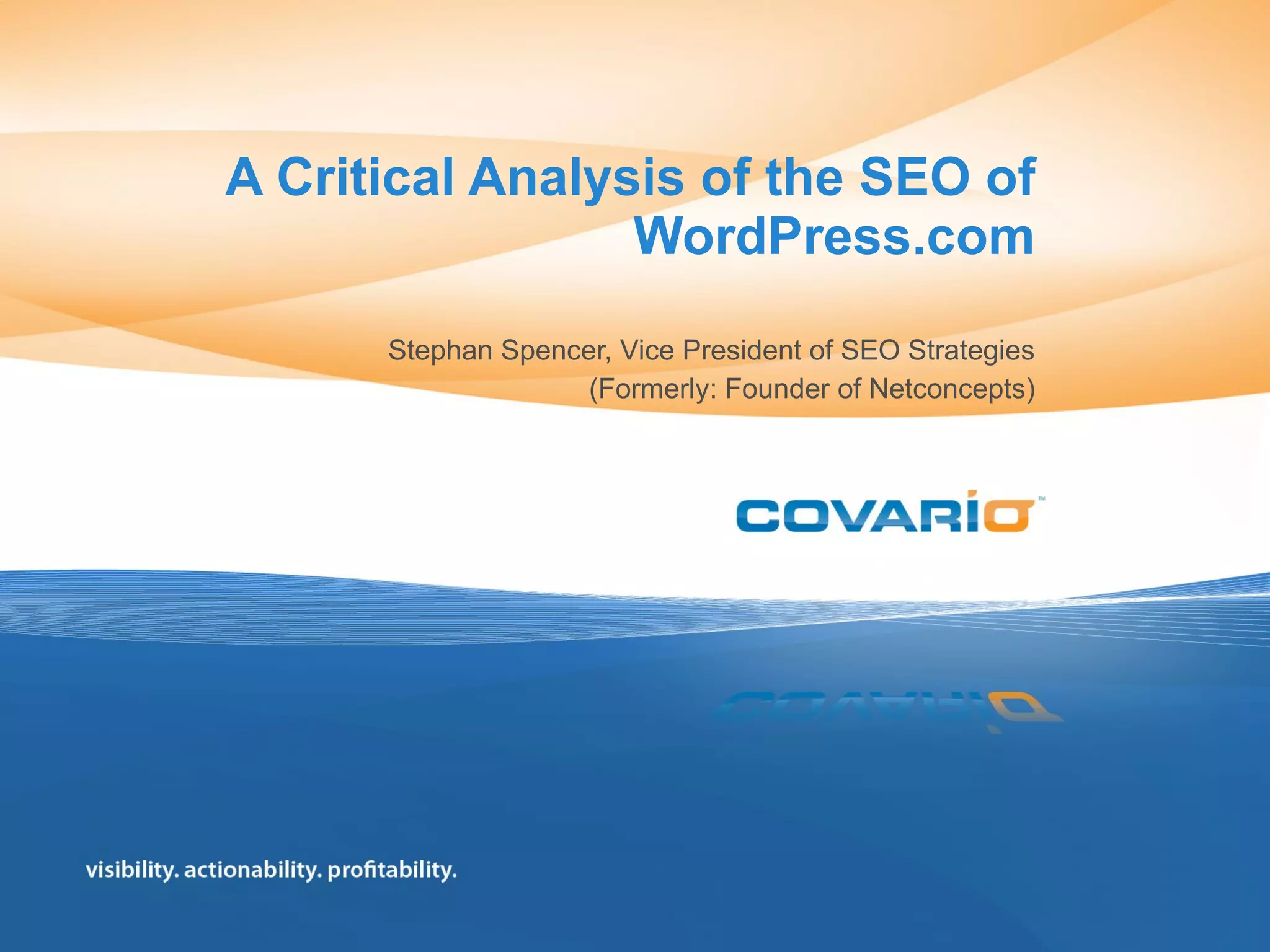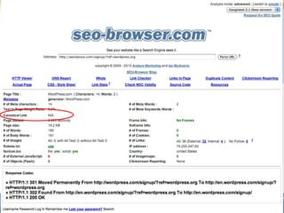 The document summarizes common myths and misconceptions about search engine optimization (SEO). It discusses how things like keyword density, link building strategies, and plugins are often thought to greatly impact rankings but may not be as effective as believed. The document also provides examples of incorrect beliefs, such as that automated SEO is black-hat or that home page updates alone can boost rankings.