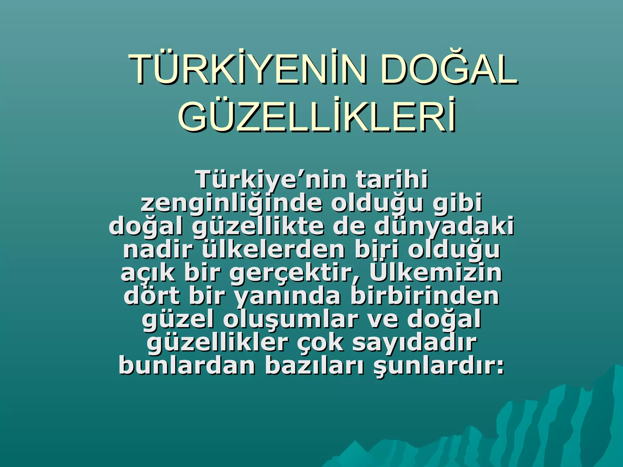 TÜRKİYENİN DOĞALTÜRKİYENİN DOĞAL